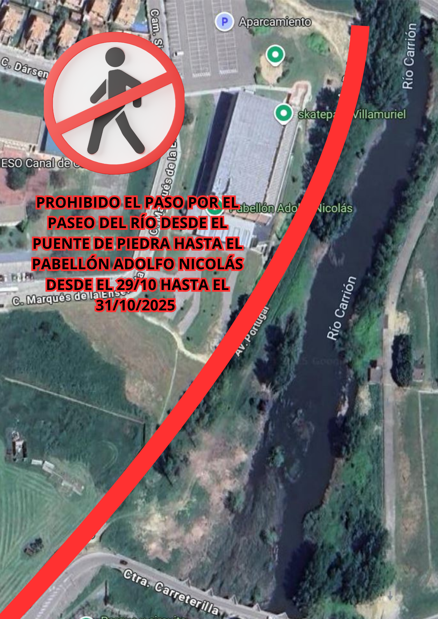 Rogamos circulen con precaución por las zonas afectadas y les informamos de que QUEDA PROHIBIDO EL PASO POR EL PASEO DEL RÍO desde el Puente de Piedra hasta el Pabellón Adolfo Nicolás desde el 29 de octubre hasta el 31 de octubre de 2025, ambos inclusive.
